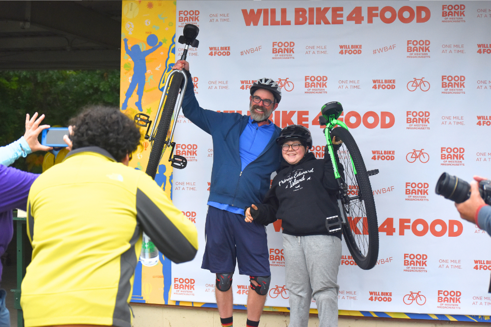 This fun cycling event raises funds and awareness for The Food Bank of Western Massachusetts. Cyclists of all levels can pedal towards a hunger-free future by joining us for a Century (100-mile), Half Century (50-mile), Quarter Century (25-mile), or the 12-mile and 4-mile Family Fun Rides. Registered riders can also participate virtually by riding their miles any time during Hunger Action Month in September.