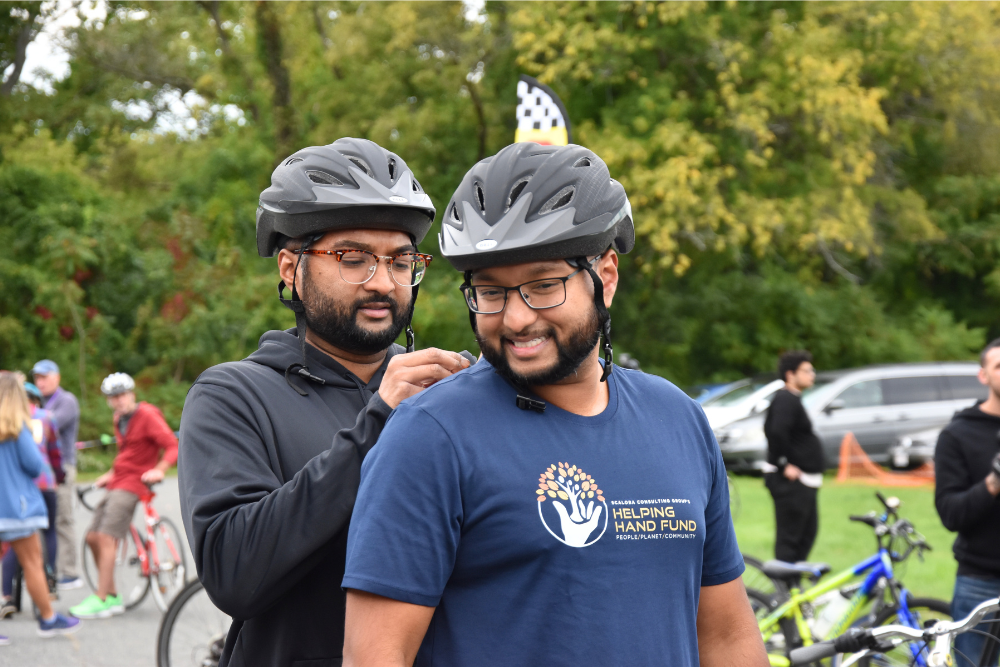 Just bring your bike, your helmet, and at least one bottle of water. There will be stops along the way where you can refill your bottle. Riders have also found it helpful to bring sunscreen, sunglasses, and extra clothes. It is strongly encouraged to wear reflective clothing and have front and rear lights on your bike for visibility, even on a sunny day. - Do I have to start biking at a certain time on the day of the live event?
